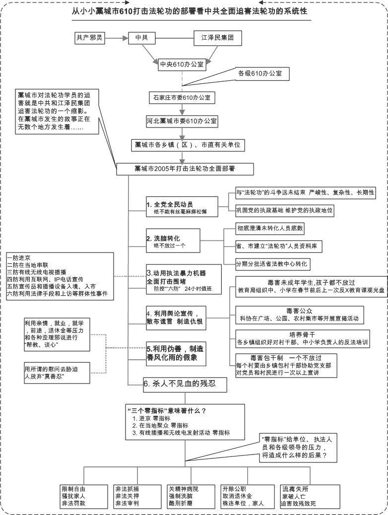 藁城各乡镇对法轮功的迫害就是江泽民集团在全国迫害法轮功的一个缩影。从中共藁城市委610办公室对2005年的工作部署,就可以看到中共和江泽民集团迫害法轮功的系统性和封闭性。
