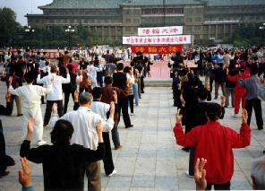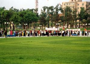 历史图片:1999年7.20前大连市的法轮功晨炼和法会