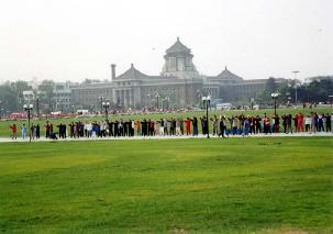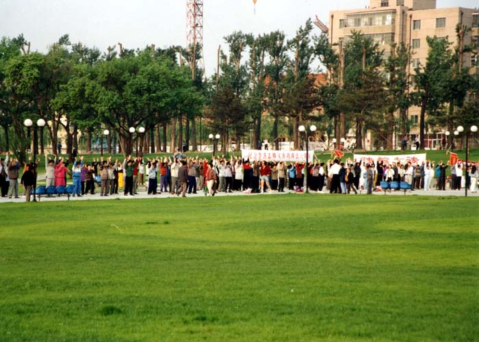 【明慧网2005年3月25日】本图为1999年以前,在长春市文化广场(即原长春地质宫),长春大法弟子集体炼功场面。
