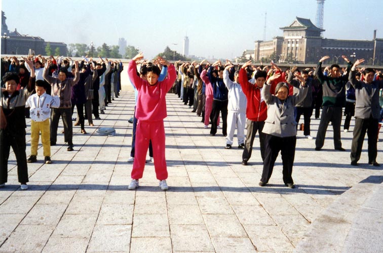 历史图片:1999年7.20前长春法轮功学员炼功学法场面