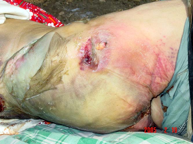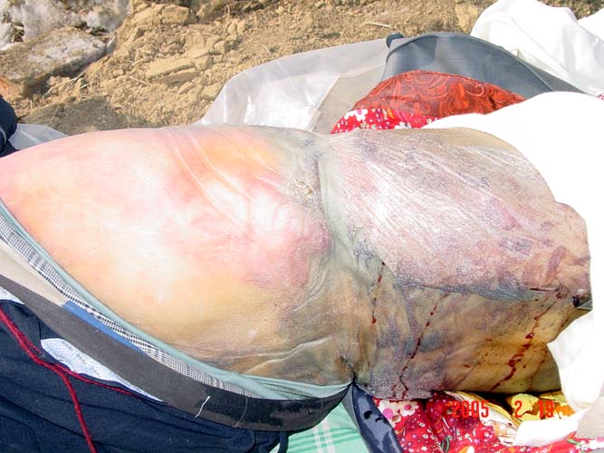 遗体令人惨不忍睹,后背被电棍电的紫黑、溃烂,腰部、臀部伤痕累累。
