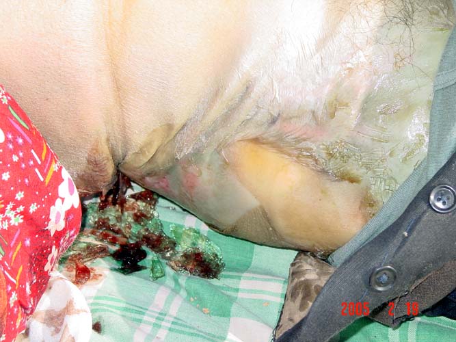 在长林子劳教所里又遭到不法之徒的野蛮殴打迫害,遭受了电刑和毒打,电棍电的后背都是紫黑色,臀部溃烂。并且被关小号两次,一次2天2夜,一次4天4夜,坐铁椅子把臀部都坐烂了。4天4夜不准睡觉,只要闭眼就用电刑,最后郭士军被折磨的奄奄一息,610才给办了保外就医送回家。在看守所里恶警对郭士军说:你千万要挺住,不能死在这里,否则我们可担不起这个责任。