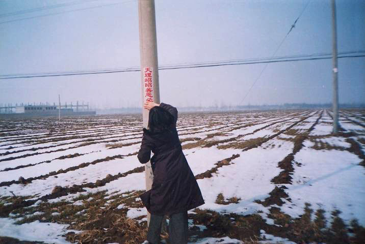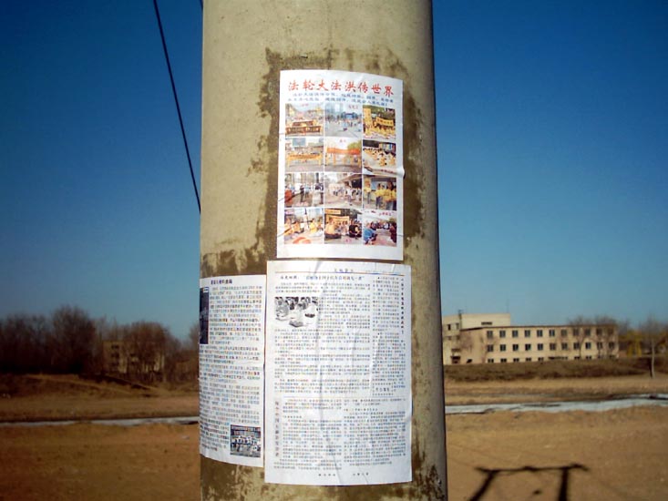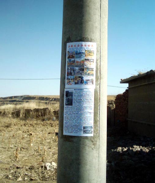 辽宁阜新地区弟子将真象资料粘在电线杆电表箱等处,讲真象救世人。