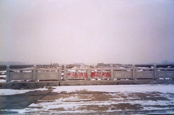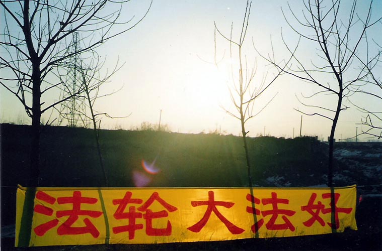 【明慧网2005年3月31日】图为山东潍坊大法弟子挂出的真象标语和条幅。