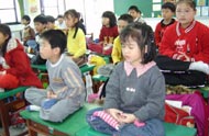 平常学校的课程很紧,我们除了每周一节的社团课外,几乎没有多余的时间学法炼功,我们利用早上和下课时间多学一点法和炼一点功,有的孩子回家会主动炼功,也会教家人一起炼。孩子们很喜欢炼功,尤其是第五套功法打坐,每次社团课下课钟响了,都不愿下座,要求多炼一点,虽然他们的腿又麻又疼,但是身体很舒服。其它所有的课程只要下课钟响,没等我说下课,很多小朋友早就跑出去玩了,可见法轮功有多受小朋友欢迎,法轮功的修炼故事也是孩子们最喜欢听的故事。