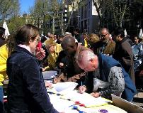 ![]() 大学生签名声援法轮功 | ![]() 小学生签名声援法轮功 | ![]() “先生,我可以签名吗?” |