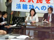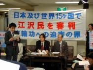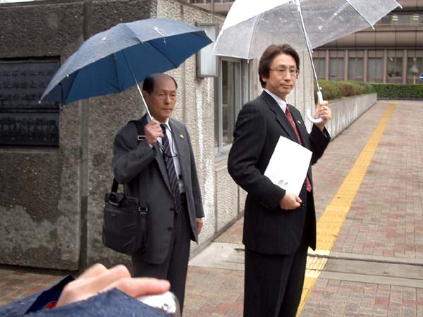 上午在日本大阪地方法院门口摆出展板并且打出横幅。