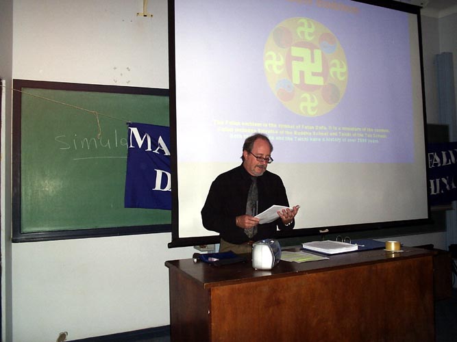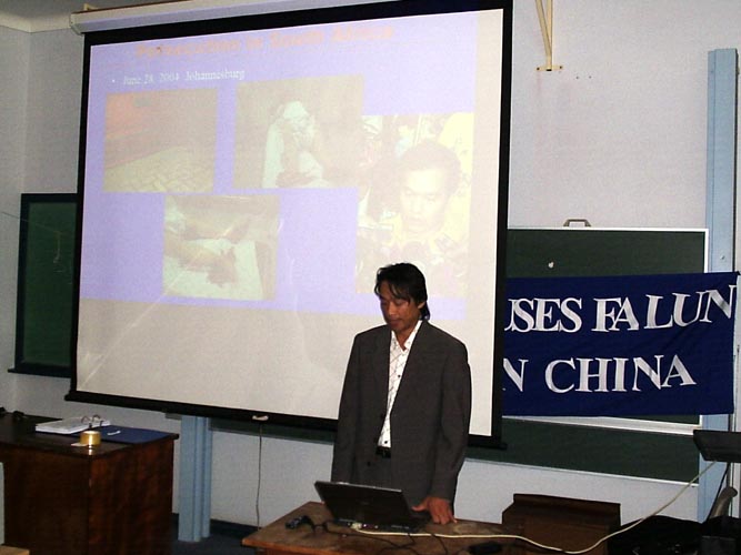 曾经因坚持修炼法轮大法而在中国被非法劳动教养一年半和三次被非法拘留的学员林莉讲述了她在中国遭受的迫害,及中共企图阻止她在南非炼功并最终失败的经历。师生们认真的听取了讲座,他们中有些是专门学习人权的法律系的学生。对法轮大法学员在中国遭受的迫害,他们表示深深的同情,表示要進一步了解法轮功真象。