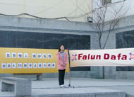 许多法轮功学员走上台,讲述六年来江氏政治流氓集团对法轮功的迫害。老华侨谭先生用广东话讲述4.25的真实过程,许多人都在静静的听。