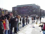 其间,有不少中国大陆来的学生和旅游者经过。其中一位中国学生对学员说,在中国“法轮功”这个字不能提,我们心里都明白是怎么回事,我们完全支持你们,你们真了不起。还有一位在英国工作的中国人说,我的亲戚同事就有炼法轮功的。法轮功本身可能我不是太清楚,但我知道炼法轮功的人和我一样也是人(应受到尊重)。