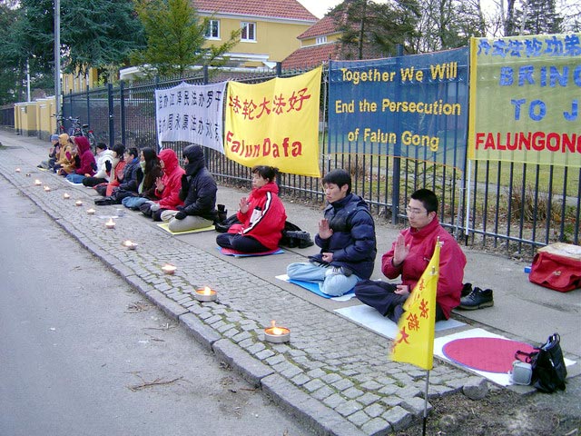 北欧法轮功学员冰天雪地中呼吁中国政府停止迫害