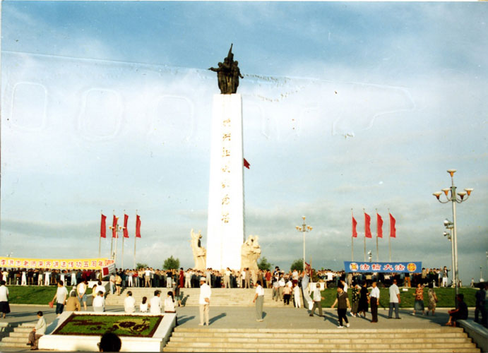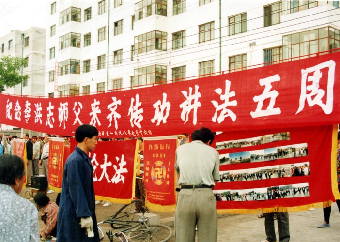 图片:98年大法弟子在辽宁凌源市政府门前集体炼功