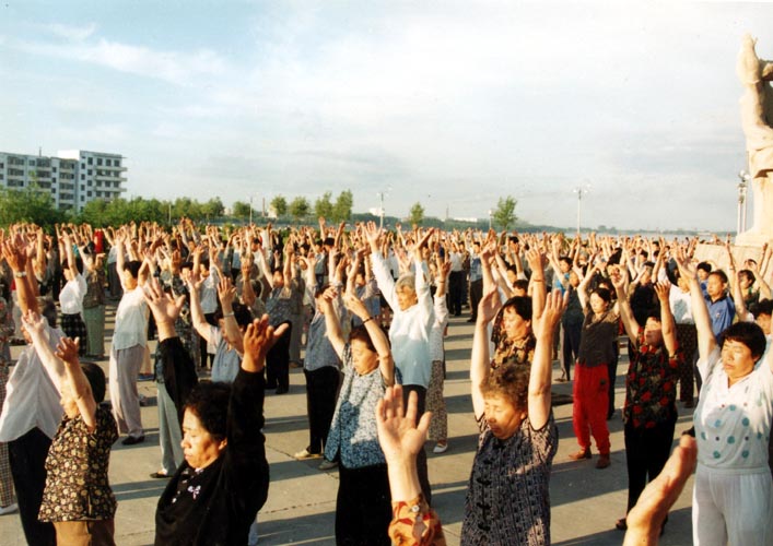 历史图片:99年以前齐齐哈尔大法弟子集体炼功场面