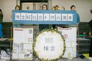 又有路人走过来了,这三位年轻人走到花圈的跟前,见到很多学员被迫害致死的照片,他们停下来,对着花圈上面的图像“喀嚓喀嚓”照相,还仔细阅读了上面的文章,学员向他们介绍:“法轮功——真、善、忍,使上亿的人走上了修炼之路,‘4.25’上访,是为了争取信仰的权利”等等。听完了学员讲真象以后,他们却不走了,在学员当中坐了下来,其中一位年轻人微笑着对法轮功学员说:“我想与你们在一起。”