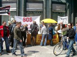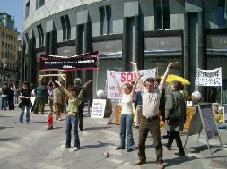 和过去的一周相比,这一天天气异常暖和,作为旅游胜地的史帝芬广场上挤满了各国的游客。法轮功学员准备了关于4.25和平上访的介绍和十几种语言的真象资料,大部份游客都能找到自己国家语言的资料。人们看到揭露迫害的模拟酷刑展时很震惊。许多人在听到真象后就问,他们怎样能对中国法轮功学员提供帮助,有没有请愿信可以签名。