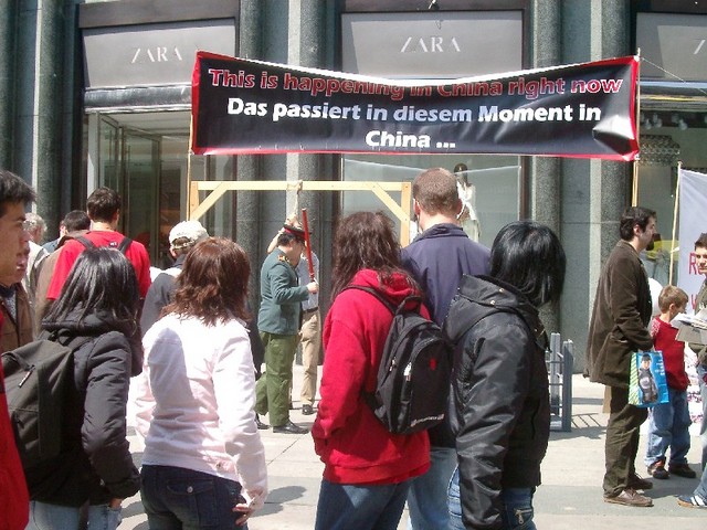 路过的中国游客有的接受资料,有的看真象图片、功法演示和反酷刑展。有的说他在国内的朋友亲戚也修炼法轮功,还看过真象光碟。有的人给同行的朋友讲,在国外炼法轮功的老外可多了。