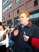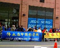 他说,今天我在代表中共政权的领事馆对面这里呼吁:中共立即停止对法轮功的迫害。他说,江泽民政权已彻底退出中共政治舞台;胡锦涛政府没有任何借口说“江”在背后控制,而不停止对法轮功的迫害。
