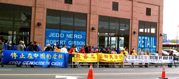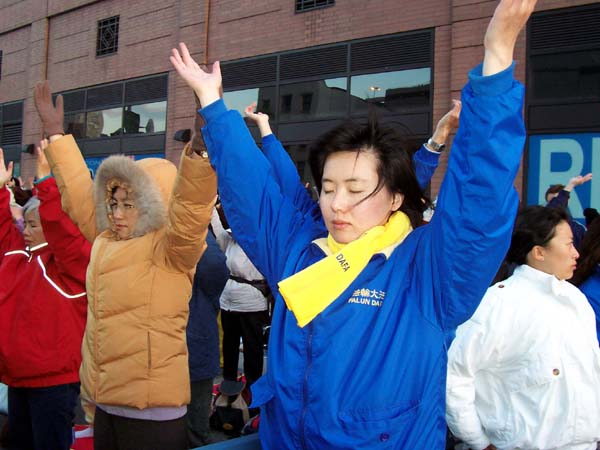 ![]() 学员在纽约中领馆前炼功 | ![]() 学员在纽约中领馆前发正念 |