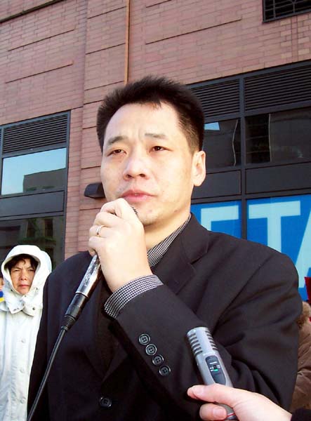 ![]() “全球审江大联盟”的代表李大勇发表声明 | ![]() “追查迫害法轮功国际组织”代表汪先生 |