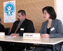 在二十三日下午的记者招待会和会员大会上,熊伟作为受害者讲述了她的经历和中共欺骗外国人的伎俩:“2003年11月27日上午,十几个外国人参观了我所在的北京市女子劳教所三大队。在此之前一两周,我们被强迫一次又一次打扫卫生,不断有各级官员来检查,大厅里搬進两大盆植物,各个班的玻璃门上挂上了雪白的针织窗帘,毛线和毛衣针全部收走不让干活,发给我们扑克牌让玩,午饭中还有了豆腐。当场我就对警察说:这可是今年头一回啊!第二天外国人一走,我们又从六点钟开始干活,不许说一句话,上午收走了窗帘,下午搬走了花盆。”