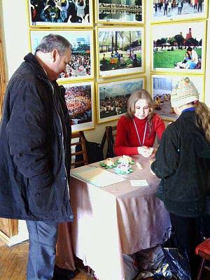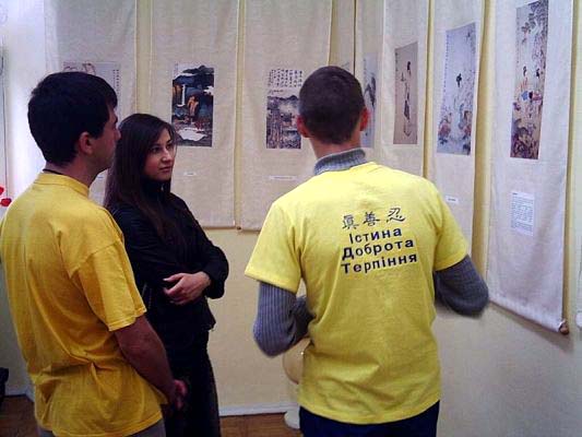 【明慧网2005年4月29日】2005年4月21至24日,乌克兰法轮功学员在维尼察(Винница)市区艺术博物馆举办了法轮功学员的绘画作品及“正法之路” 图片展,第一次使该城市的居民广泛的了解了什么是法轮功,以及在中国发生的对法轮功的残酷迫害