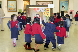 ![]() 小朋友们观看画展 | ![]() 讲真象 | ![]() 集体炼功 |