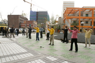当天,阳川区“佛心会”与韩国最大的禅宗寺院能忍禅院一起开法会。法会结束后,阳川区厅长、和智光禅师等许多人士也来参观画展,并了解了法轮功真象。在出入口前的广场上,法轮功学员们集体炼功。直接看到了炼功的场面,许多人都产生了浓厚的兴趣。