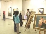 展厅的旁边是结婚礼堂,展厅的二楼是电影院,许多人路过时都看了画展,了解了法轮功真象。星期六,甚至要到晚上10点电影结束后,才能结束画展。这次画展可谓盛况空前。