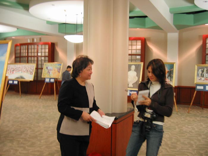 ![]() 画展组织者接受记者参访 | ![]() 展厅一角 |