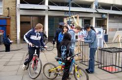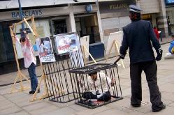 【明慧网2005年4月9日】2005年3月20日,部分英国法轮功学员在英国最大的城镇之一哈德斯菲尔德举办了反酷刑展,向当地人介绍法轮功以及发生在中国对法轮功学员的残酷迫害。学员派发真象传单,并且几乎每人手持一份征签表,向人们讲述真象,征集签名。扮演警察和被酷刑折磨的大法弟子的法轮功学员们一站就是几个钟头,毫无怨言。刚开始不久的新学员也加入了活动。