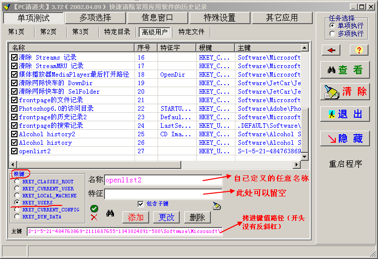那么如何自动清除呢?以Win2000系统为例,使用PC清道夫: