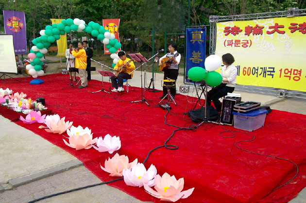 安山市,在韩国,是中国人最密集的居住地之一,近两万中国人居住在此地。一到公休日,居住在周边地区的中国人,也到安山市的中国城来逛一逛,购买食品等。安山法轮功学员通过这几年不懈的讲真象活动,已使很多当地的中国人和韩国民众了解了法轮大法真象。为了使更多的有缘人了解大法真象和大法的美好,学员们精心准备了此次音乐会。