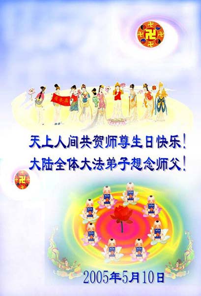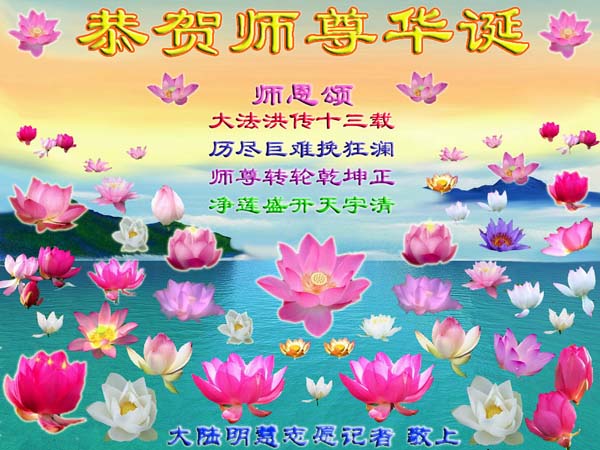 <英文版: http://www.clearwisdom.net/emh/articles/2005/5/14/60765.html>大陆大法弟子恭贺师尊华诞暨法轮大法洪传十三周年(2)