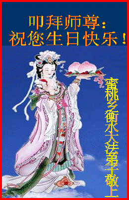 师尊啊!弟子们拿什么敬献给您的生日呢?把我们修好的那最纯净的部份供奉给您吧?可那是您给的;把凡间最优美的语言敬献给您吧?可那是您造的。我们只能是做好您要求的“三件事”,修好自己,救度世人,不偏离法,能跟着您回家,我能把这称为报答吗?