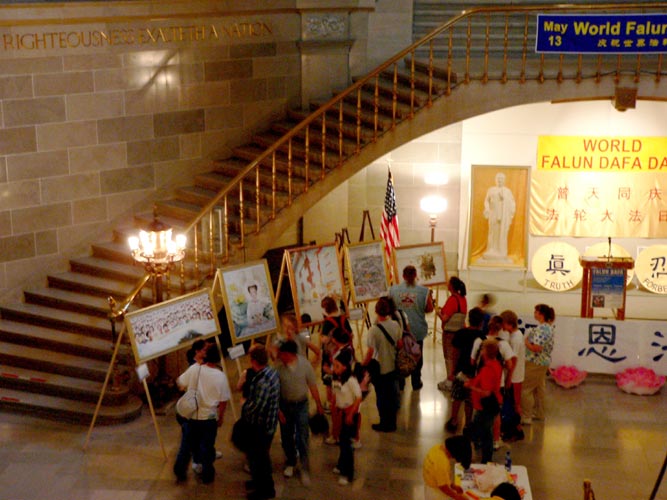 “真善忍画展”在州政府大厅举行