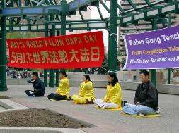 ![]() 世界法轮大法日,法轮功学员在奥林匹克广场炼功 | ![]() 法轮功学员向过路行人讲真象 |
