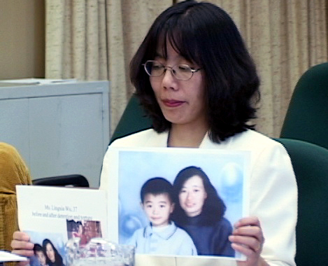 随后,重点介绍了加拿大人的亲属在中国被非法关押及判刑的情况,及受到直接迫害的儿童,特别是被迫害致死的法轮功学员的遗孤的情况。