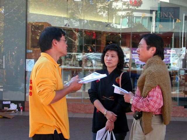 展览过程中,学员给许多人介绍法轮大法自1992年以来的洪传和在中国所受到的迫害。观看展览的人们有的来自台湾、香港和加拿大,得以了解法轮功。有些年轻人在看了展览,了解到法轮功真象和在中国所受迫害之后,感动得流下了眼泪。