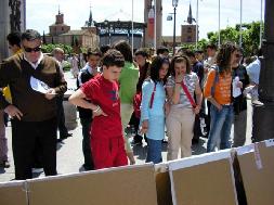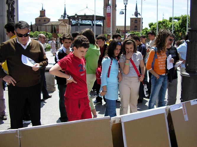 【明慧网2005年5月17日】世界法轮大法日期间,西班牙各地法轮功学员举办各种方式的庆祝、洪法活动。2005年5月15日,部份马德里(MADRID)学员来到阿尔卡拉-埃纳莱斯(ALCALA DE HERNARES)城洪法讲真象。阿尔卡拉城历史悠久,整个城市被联合国列为重点保护的世界文化遗产;位于市中心的ALCALA大学是西班牙最古老的大学之一,大学的牌楼顶端栖息着成群的鹤,一到阿尔卡拉城,就看到三三两两的仙鹤在蓝天白云间悠然自得,展翅翱翔,构成一幅美丽的图画。