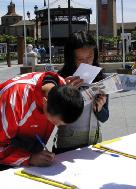 一对中国兄妹得知法轮功在中国遭迫害的真象后,也拿起笔签名声援