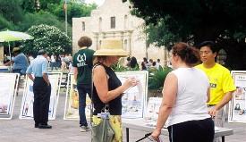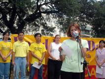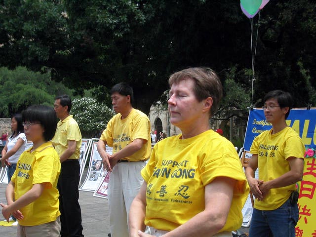 庆祝活动首先进行了法轮功功法展示,场面纯正祥和。随后的集会活动中,学员宣读了来自德州州长、州务卿、奥斯汀市长颁发的褒奖和贺信,并有多位学员发言,从不同的方面向观众陈述了法轮大法的美好和中共镇压法轮功的人权迫害等等。活动的最后,学员们合唱“得度”,“法轮大法好”,“为你而来”。