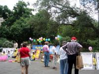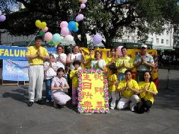 沿场地四周排列的真象展板向人们讲述了法轮大法的洪传,中共江氏集团在中国对法轮功的迫害,在海外对法轮功学员的骚扰,以及法轮功学员全球范围的反迫害和各界对法轮功的声援。