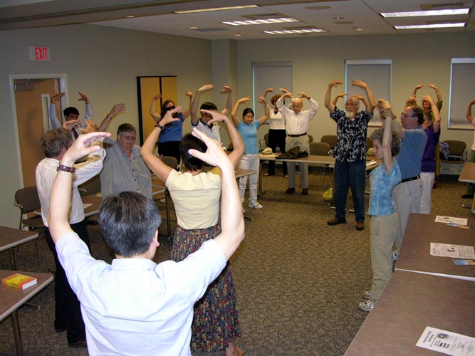 5月14日,学员们在纳什维尔市公共图书馆举行了一场法轮大法讲座,同时庆祝世界法轮大法日。近20名中西人士参加了讲座。讲座上,学员们先通过计算机和投影仪播放了19分钟介绍法轮大法及其在世界洪传情况的录像片,然后给予观众充分时间提问和回答所提问题,之后播放5套功法的教功录像。每播一套,学员就停下来手把手的教与会人士炼功动作,然后继续下一套功法,直到5套功法全部教完。