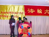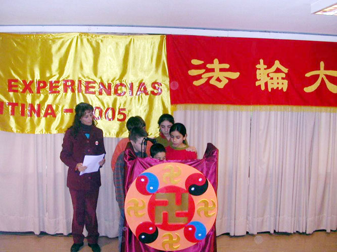 会中由来自阿根廷不同地区的学员发言。阿根廷新学员较多,有许多学员发表他们如何一边自身修炼,一边讲清真象,以及证实大法的体会。会中由小弟子向师父及法轮大法日祝贺,感谢师父带给了他们“真、善、忍”。他们说他们无法亲手献花给师父,可是他们献出他们心中的花。法会于晚上8点成功的结束。
