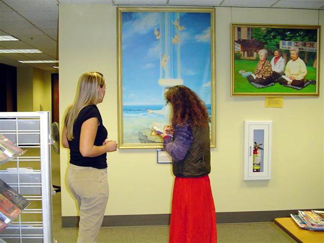 法轮功学员们了解到,人们对画展非常感兴趣,许多人走访了三处展览点。当展览结束时,图书馆职员对当地的一位法轮功学员说:“我会记住这些图片的。因为很多善良的人们前来观看过。”
