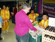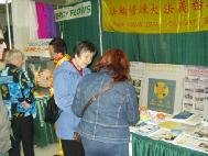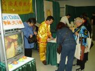 在两天的展会中,法轮功的展位是本次展会的亮点,来参观我们展位的人数最多。展位上,我们播放法轮功法演示录像并当场教功,还教前来参观的人叠纸莲花。第一天,我们到会场开始布置时就已经有人在等着要学功,展会期间来学功的人更是络绎不绝,甚至展会闭幕时,还有人不愿走要跟我们学功。