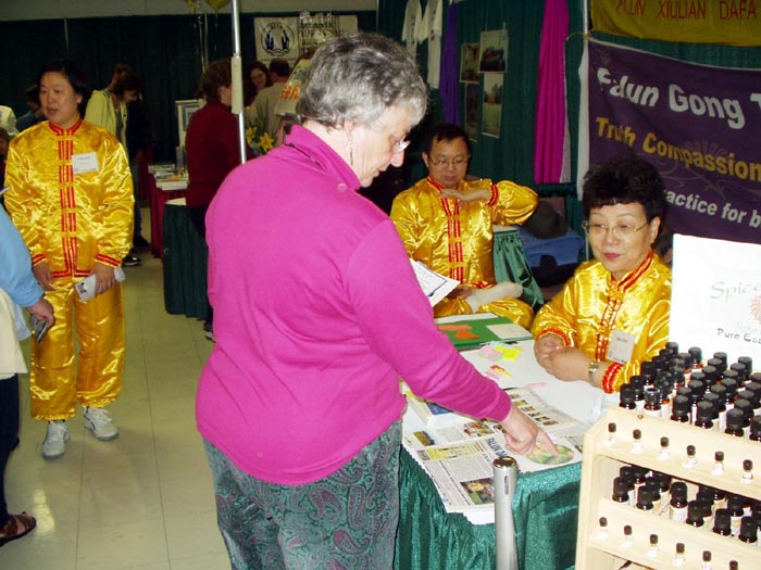 该博览会是以身体、心理及精神健康为主题的,我们也主要介绍法轮功是什么以及法轮功的美好,可我们发现相当多的人都知道法轮功在中国遭受的迫害,几乎一半的人学功后都会问,这么美好、美妙的功法为什么在中国会遭受迫害,他们感到困惑。我们告诉他们法轮功所信仰的“真、善、忍”与共产党的“假、恶、斗”根本上是对立的,中共不仅想控制天、地、人,还想控制人的思想。加拿大的人民绝大多数对中共没什么好感,听到真象后更觉得它愚不可及。