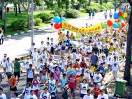 图:新加坡法轮功学员的方阵在大竞走活动当中