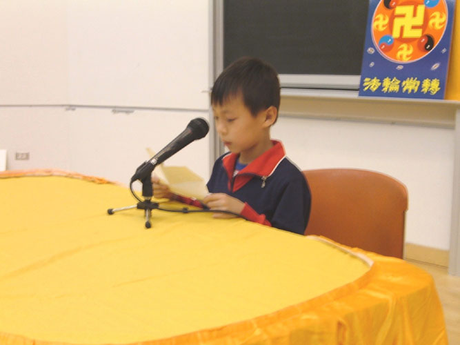 7岁的Kevin给大家讲了自己学法和讲真象的故事。Kevin出生在美国,虽然没有学过中文,但是他从3岁就开始学背《洪吟》,读《转法轮》,他还经常帮助妈妈在电话中讲真象。