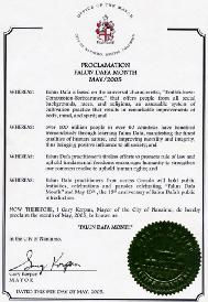 鉴于,加拿大的法轮大法修炼者们在5月13日欢庆“法轮大法月”暨法轮大法洪传13周年,并在整个加拿大举行游行庆祝活动;